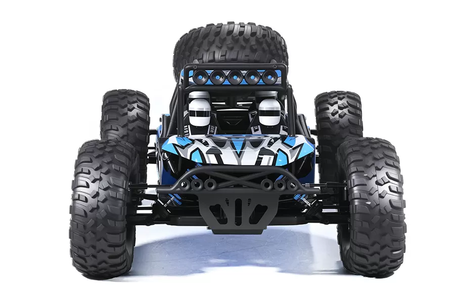 The blue parts of the entire car are made of alum material, providing multiple advantages.Their high rigidity enhances torsional stiffness, improving handling precision and stability during high-speed maneuvers or impacts. The lightweight yet durable nature of aluminum reduces overall weight while maintaining structural integrity, boosting acceleration and battery efficiency. These components effectively absorb vibrations, protecting electronics like ESCs and receivers. The enhanced heat dissipation prevents overheating in power systems.