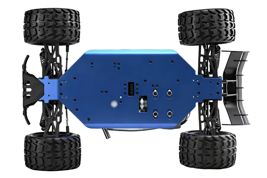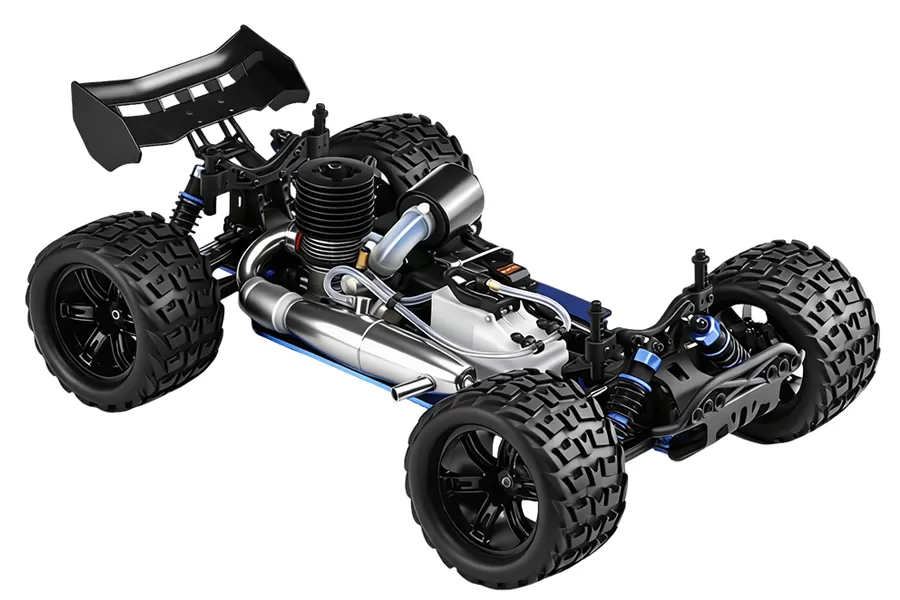 Equipped with a solid 6061-T6 anodized aluminum 3mm chassis plate, this nitro Truggy delivers extreme rigidity and race-winning stability. The hardened chassis provides exceptional impact resistance and virtually zero flex, ensuring precise handling at high speeds. Combined with full 4WD traction and professional nitro power for ultimate performance.